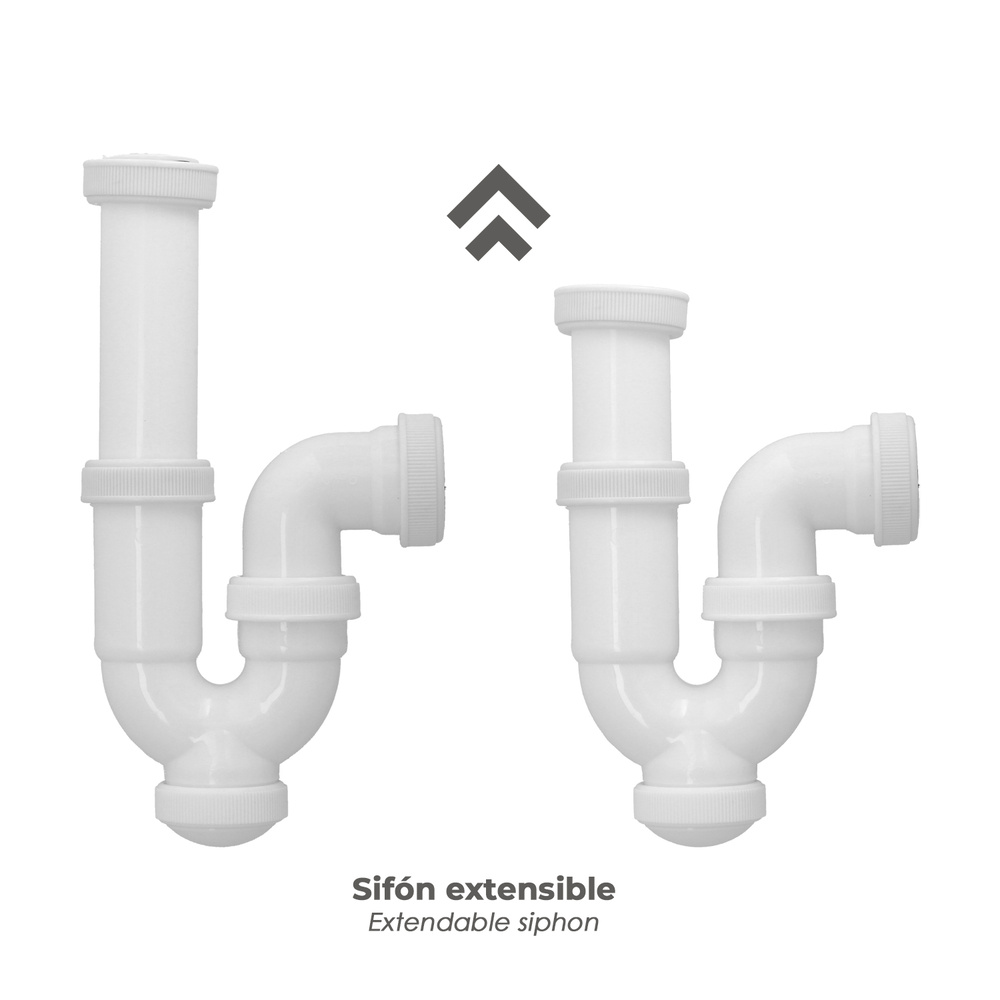 – ArtÃculo también conocido como sifón fregadero, sifon, sifon fregadero, sifones, sifon curvo, sifon extensible, salida horizontal, sifon tuerca loca, etc.