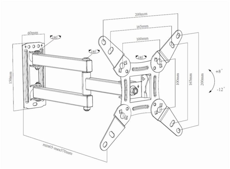 • Soporte de pared orientable con doble brazo para televisores de 13″ a 47″