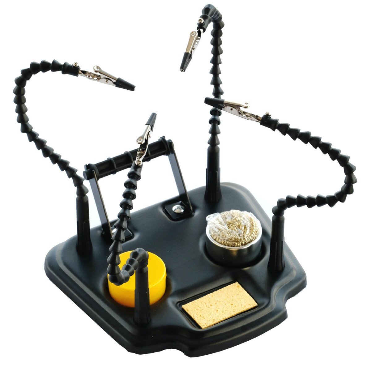 - Una ayuda indispensable para realizar trabajos de soldadura en circuitos electrónicos o realizar trabajos de precisión que requieran sujetar piezas al mismo tiempo que se trabaja sobre ellas.