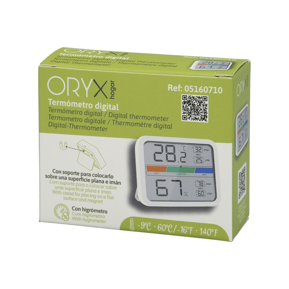 – El termohigrómetro se actualiza cada 10 segundos, garantizando que siempre obtengas las lecturas más recientes. Mide con precisión la temperatura en interiores de -9°C a 60°C (-16°F a 140°F), asà como la humedad en un rango de 25% a 95%.