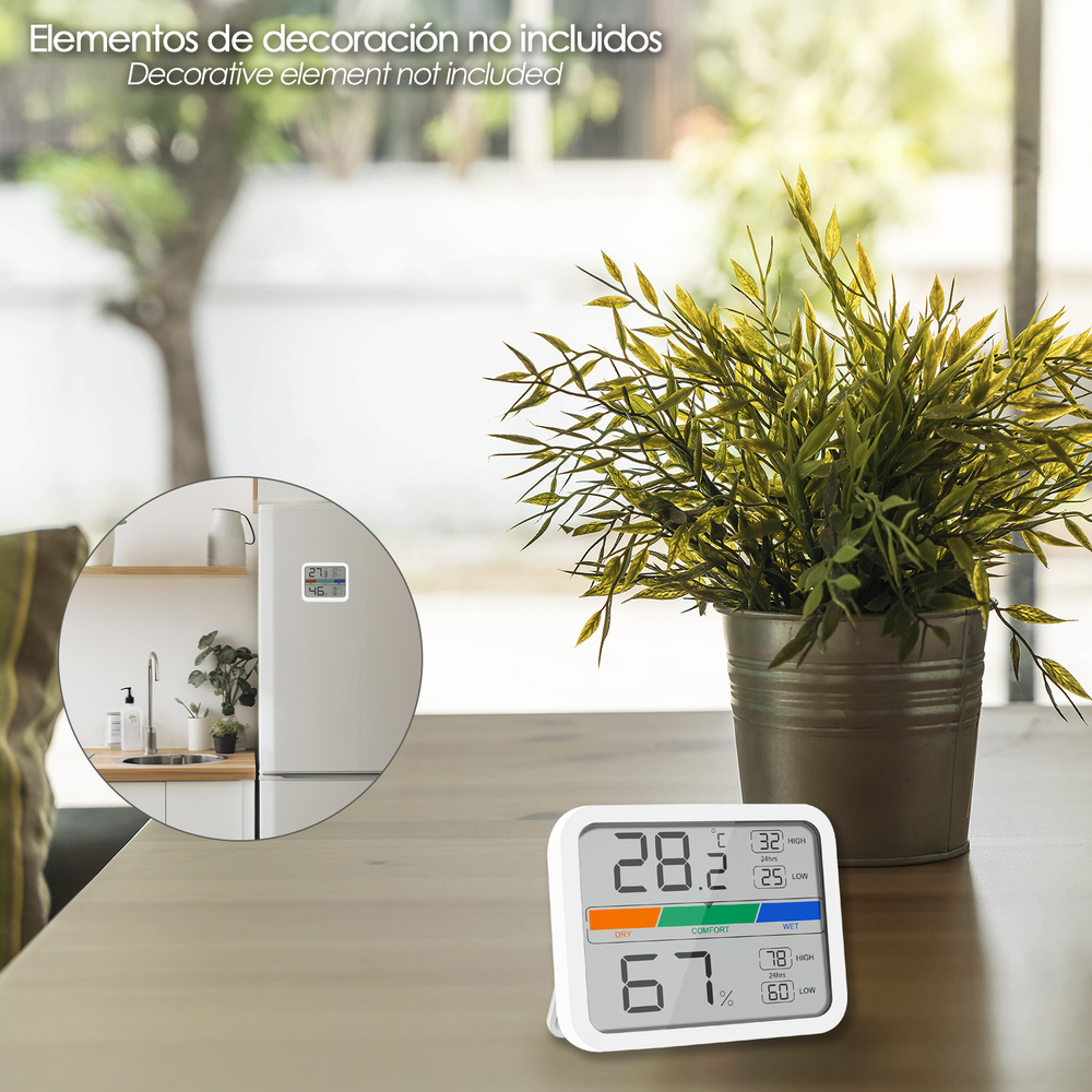 Termómetro Digital Higrómetro Interiores y Exteriores Minimo/Máximo Con Indicardor De Humedad