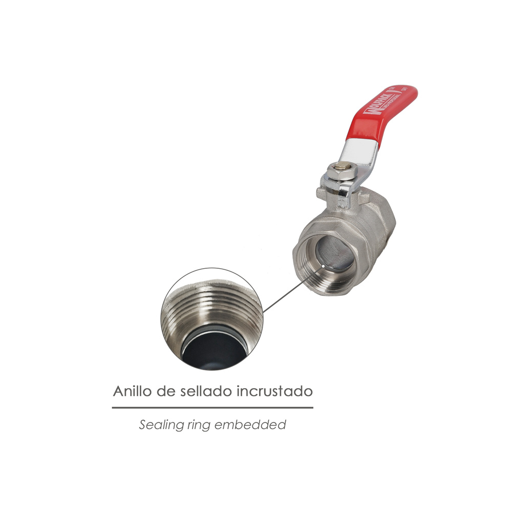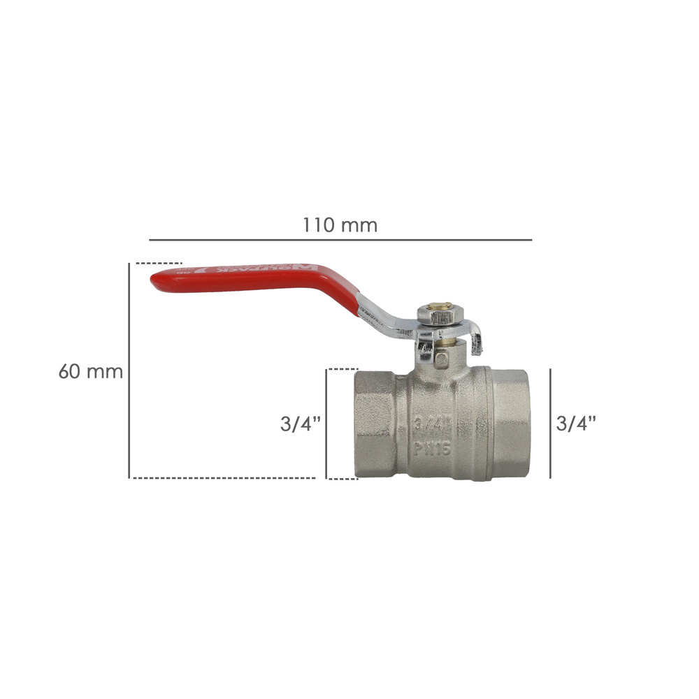 – Válvula de esfera de 3/4″ Hembra/Hembra.