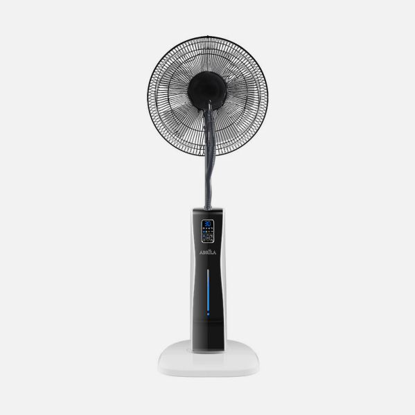 Ventilador de Pie de la serie CORVO con NEBULIZADOR Y TANQUE DE AGUA DE 2 LITROS, en color BLANCO/NEGRO con cinco aspas y tres velocidades. Gracias a su función nebulizadora, refresca y humifica rápidamente cualquier estancia, ideal para terrazas y patios, pulveriza micropartÃculas de agua con lo que aumenta la humedad y elimina el polvo. Realizado en metal y policarbonato. Motor AC. Tiene una potencia de 75 watios. Dos posiciones, fijo y rotatorio, también oscilante, pudiéndose redirigir el aire a la zona deseada y tres modos de aire NATURAL-SUEÑO-NORMAL. Presenta unas dimensiones de 125x43x40 centÃmetros. Manejo táctil con indicador LED, con mando a distancia INCLUIDO y TEMPORIZADOR de 1 a 12 horas, pudiendo seleccionar que el ventilador se apague solo automáticamente y consiguiendo un gran ahorro de energÃa. Viene con 4 ruedas invisibles para facilitar su traslado. El ventilador y el nebulizador pueden utilizarse por separados o juntos.