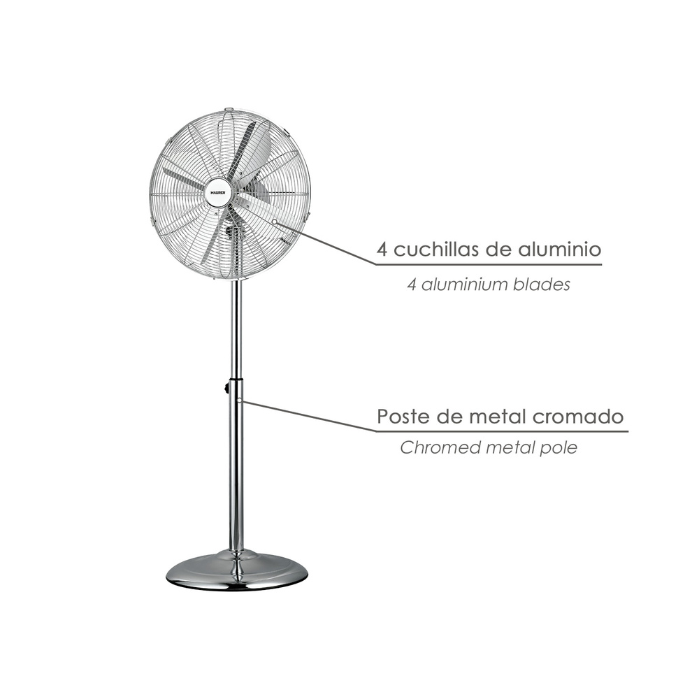 Ventilador Pie Ø 44,5 cm. Altura 130 cm. 60 watt. Ventilador oscilante. Ventilador Pie silencioso. Circulador de aire.